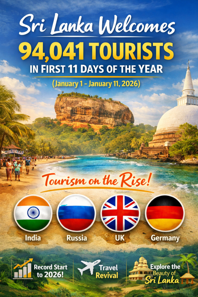 Sri Lanka Welcomes 94,041 Tourists in First 11 Days of the Year